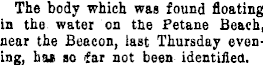 The body which was found floating in the water on the Petane Beach, near the Beacon, last Thursday evening, ha* so far not been identifiea.