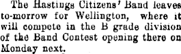 The Hastings Citizens’ Band leaves to-morrow for Wellington, where it will compote in the B grade division of the Band Contest opening there on Monday next.