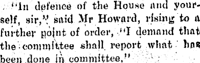 hlii defence of the House and yourself, sir,’! said Mr Howard, rising to a further pojnt of order, “I demand that the committee shall, report what has been done in. committee,’ *
