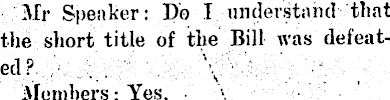 Mr Speaker: Do I understand that the short title of tlie Bill was defeated? Members: Yes.