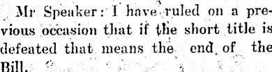Mr Speaker: I have .ruled on a previous occasion that if (lie short title is defeated that means the end. of the Bill. '
