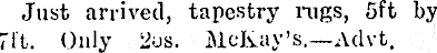 Just arrived, tapestry rugs, sft by 7ft. Only 2os. McKay’s.—Ad vt.