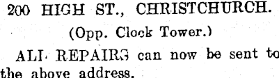 200 HIGH ST., CHRISTCHURCH. (Opp. Clock Tower.) ALT REPAIRS can. now be sent to the above address.