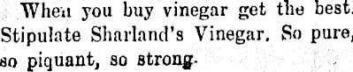 When you buy vinegar get the best. Stipulate Sharland’s Vinegar. So pure, so piquant, so strong-