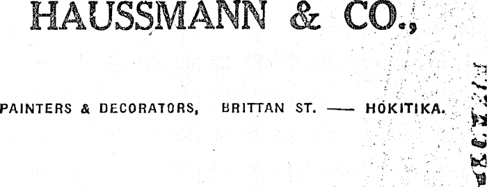 HAUSSMANN & CO., PAINTERS & DECORATORS, BRITTAN ST. HOKITIKA. b w *