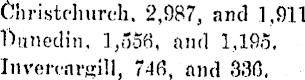 Christchurch. 2,987, and 1,911 Dunedin, 1,556, and 1,195. Invercargill, 746, and 330,