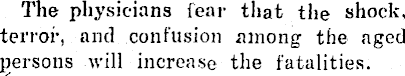 The physicians tear that the shock, terror, and confusion among the aged persons will increase the fatalities.