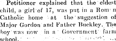 Petitioner explained that the eldest child, a girl of 17, was put in a Rom n Catholic home at the suggestion of Major Gordon and Father Buckley. The boy was now in a Government farm school. ' - : 1