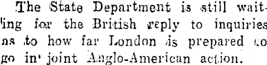 The 'State Department is still waiting far the British reply to inquiries ns to how far London /is prepared i.o go in' joint Anglo-American action.