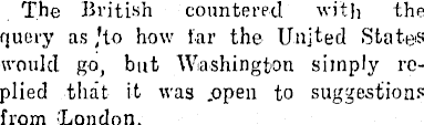 The British countered with the query as ,'to how far the Unjted States would go, but Washington simply replied that it was .open to suggestions from 'London.