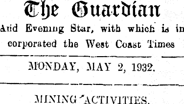 The Guardian And Evening Star, with which is incorporated the West Coast Times MONDAY, MAY 2, 1932. MINING ACTIVITIES.