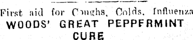 First aid for Coughs, Colds. Influenza WOODS’ GREAT PEPPFRMINT CURE