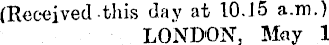 (Received-this day at 10.15 a.m.) LONDON, May 1