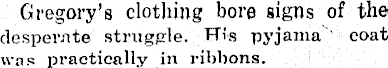 Gregory’s clothing bore signs of the desperate struggle. THs pyjama coat was practically in ribbons.
