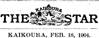 THE KAIKOURA STAR KAIKOURA, FEB. 16, 1904.