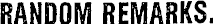 RANDOM REMARKS.