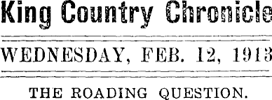 King Country Chronicle WEDNESDAY, FEB. 12, 1913 THE ROADING QUESTION.