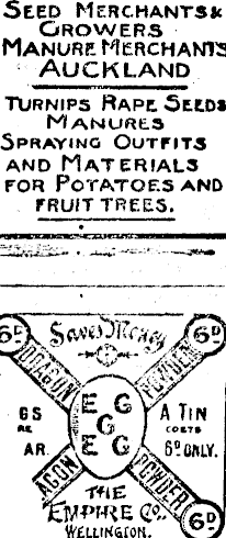 Seed Merchants* Growers Manure Merchants Auckland Turnips Rape Seeds Manures Spraying Outfits and Materials for Potatoes and FRUIT TREES. 6?k Gs4 E r 2pTlN ** v3* ! to»t» AR.AE GAjP.OIILV. Yzf •»**£ WLLtIKGfON. XPj/