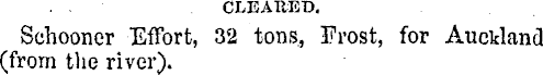 . . CLEARED. Schooner Effort, 32 tons, Frost, for Auckland (from the river).