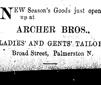 N EW Season’s Goods just open* up at ARCHER BROS., LADIES’ AND GENTS’ TAILOE Broad Street, Palmerston N.