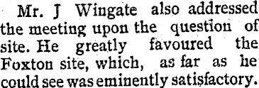 Mr. J Wingate also addressed the meeting upon the question of site. He greatly favoured the Foxton site, which, as far as he could see was eminently satisfactory.
