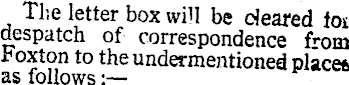The letter box will be cleared ioi despatch of correspondence from Foxton to the undermentioned place* as follows