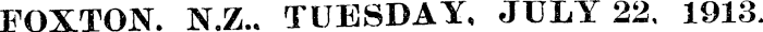 FOXTON. N.Z.. TUESDAY, JULY 22. 1913.