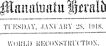 Manawatu Herald TUESDAY, JANUARY 28, 1918. WORLD RECONSTRUCTION.