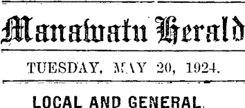 Manawatu Herald TUESDAY, MAY 20, 1924. LOCAL AND GENERAL