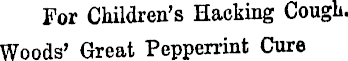 For Children’s Hacking Cough. Woods’ Great Pepperrint Cure