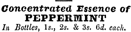Concentrated Essence of PEPPERMINT In Bottles, Is., 2s. & 3s. 6d. each.