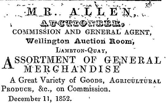 COMMISSION AND GENERAL AGENT, Wellington Auction Room', L'AMBTON-QUAY, ASSORTMENT OF GENERAL ' ■^ MERCHANDISE A Great Variety of Goods, Agricultural Produce, &c, on Commission. December 11, 1852.