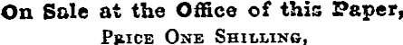 On Sale at the Office of this Paper, Pjiice One Shilling,