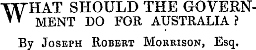 WHAT SHOULD THE GOVERN- ™ MENT DO FOR AUSTRALIA? By Joseph Robert Morrison, Esq.