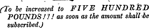 (To be increased to FIVE HUNDRED POUNDS/// as soon as the amount shall he subscribed.)