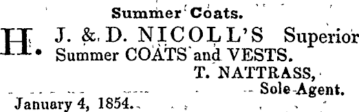 Summer Coats. HJ.&.D. NICOLLS Superior • Summer COATS* and VESTS. T. NATTRASS, . -._..- — - Sole -Agent. January 4, 1854., . t ..."