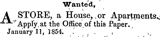 Wanted, A STORE, a House, , or Apartments^ -*^-'' Apply, at the Office of this Paper., January 11, 1854. , . ,