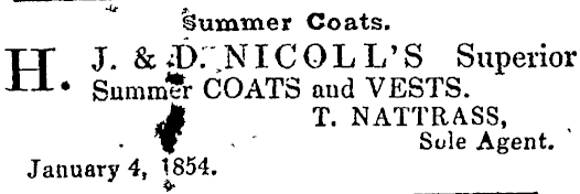 Rummer Coats. HJ. &;t>. NICOLLS Superior • Summer COATS and VESTS. Jt T. NATTRASS, . V ' Sole Agent. ' January 4, 1854. $•