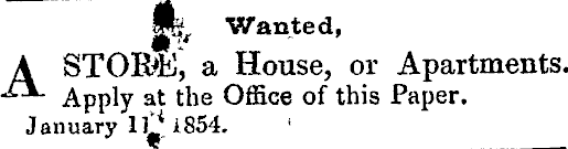 m e Wanted, ASTOR>E, a House, or Apartments. Apply at the Office of this Paper. January 11^1854.