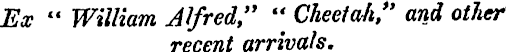 Ex " William Alfred," " Cheetah*' and other recent arrivals.