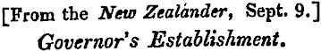 [From the New Zealander, Sept. 9.] Governor's Establishment.
