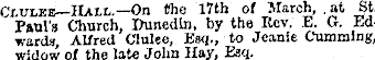 Cf.ULKE—IUix.—On the 17th of March, ,at St. Paul's Church, Dunedin, by the Kov. E. G. Edwards Alfred Clulee, Esq., to Jeanie Camming, widow of the late John Hay, Esq,