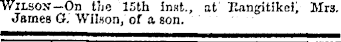 Wilsok—On the 15th Inst., at' Rangitikcij Mrs. James G. Wilson, of a son.