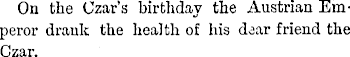 On the Czar’s birthday the Austrian Emperor drank the health of his dear friend the Czar.