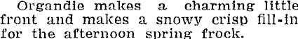 Organdie makes a charming: little front and makes a snowy crisp fill-in for the afternoon spring frock.