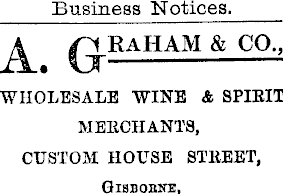 Business Notices. fj- RAHAM & c 0 > WHOLESALE WINE & SPIRIT MERCHANTS, CUSTOM HOUSE STREET, Gisborne,