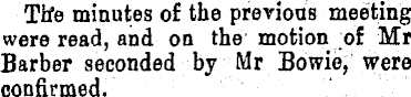 The minutes of the previous meeting were read, and on the motion of Mr Barber seconded by Mr Bowie, were confirmed.