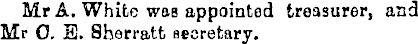 Mr A. White was appointed treasurer, and Mr 0. B. Sberratt secretary.