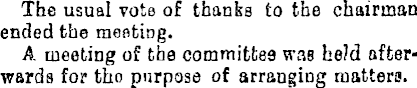 The usual vote of thanks to the chairman ended the meeting. A meeting of the committee was held afterwards for the purpose of arranging matters.