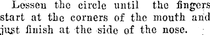 Lessen the circle until the fingers start at the corners of the mouth and just finish at the side of the nose.